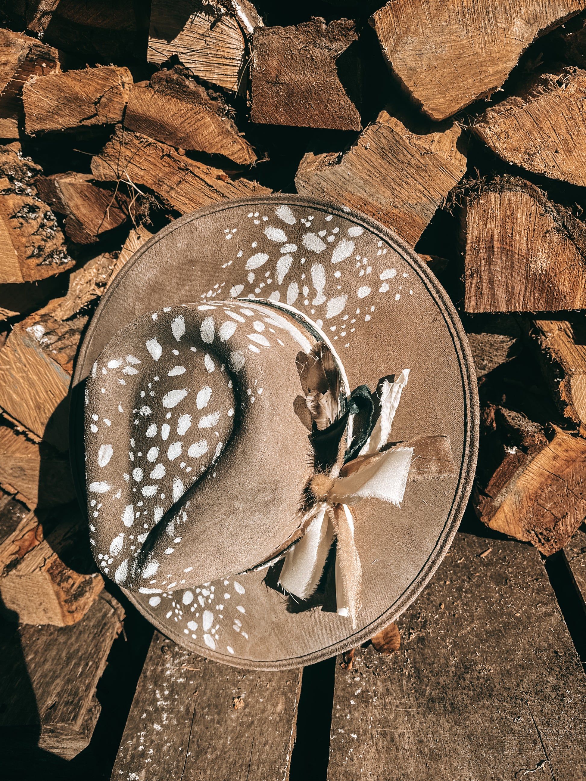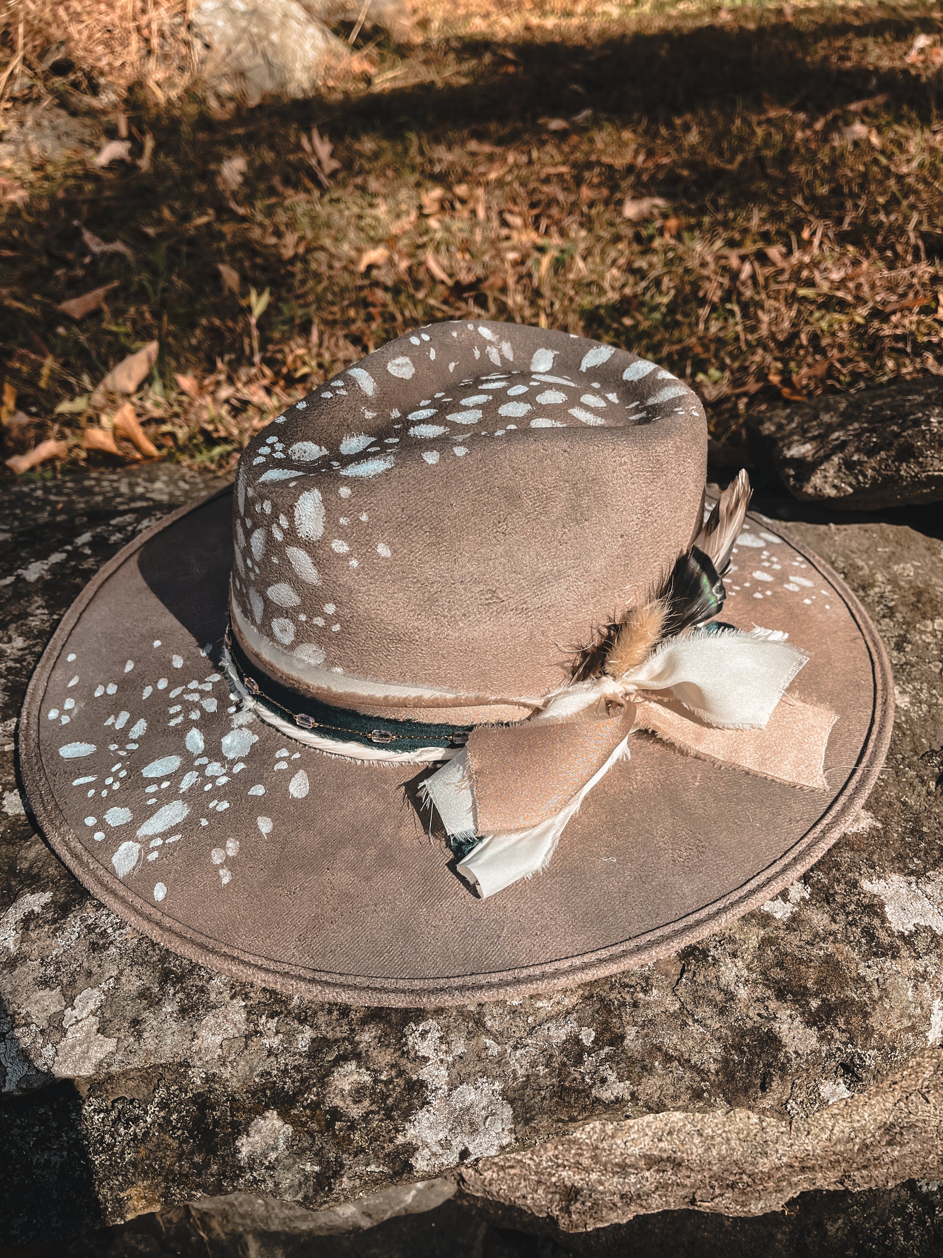 Wander where the wild things whisper in the Forest Fawn Hat — a hand-painted piece that captures the quiet beauty of the woods. Crafted from soft faux suede in a warm taupe hue, this hat features delicate white fawn spots painted by hand, giving each piece its own one-of-a-kind charm.
