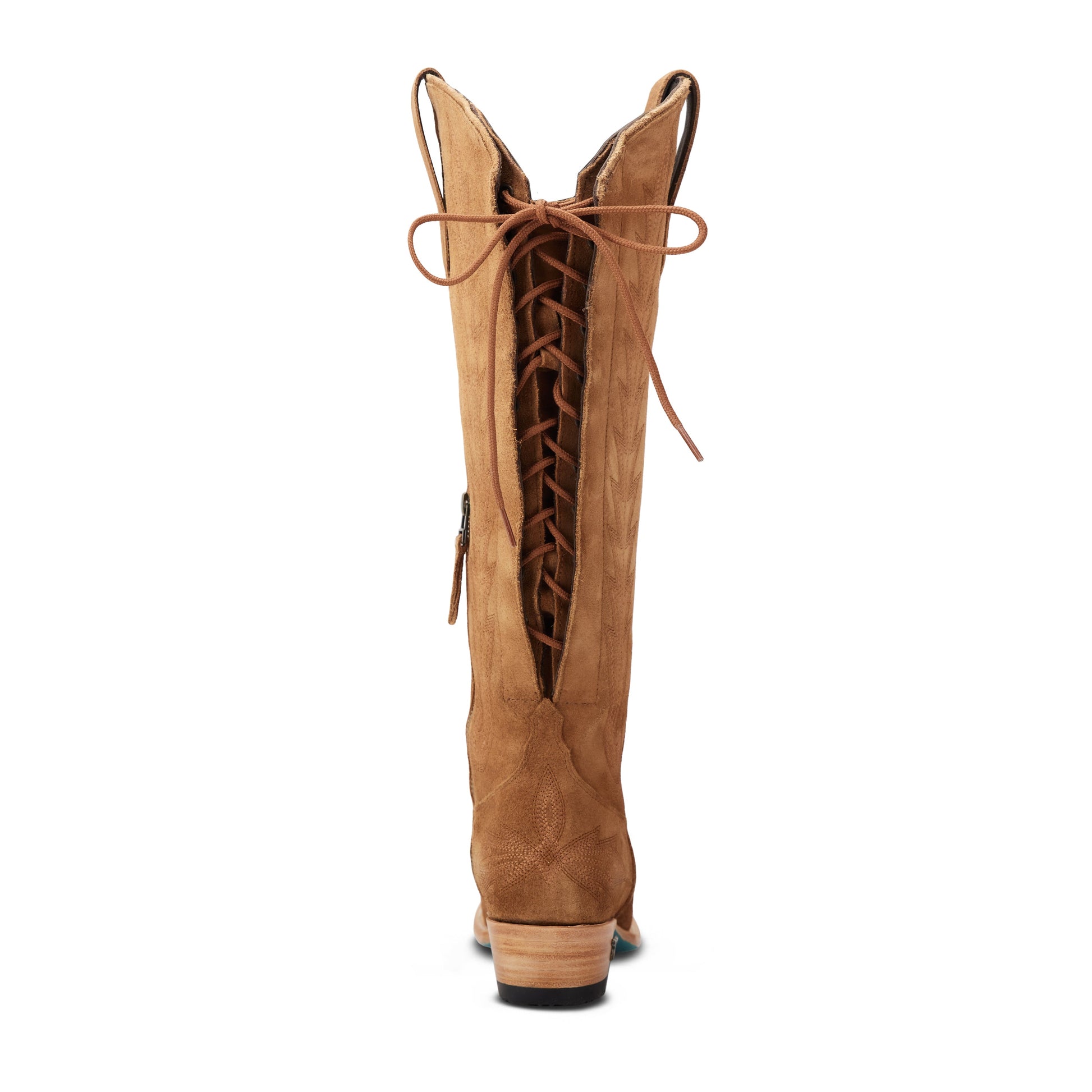 Heirloom quality with a core western influence. The classic snip toe profile is embroidered to perfection with a twist on traditional flame stitch and a functional corset back. The Lexington Knee-High is timeless and sexy all wrapped in one.
